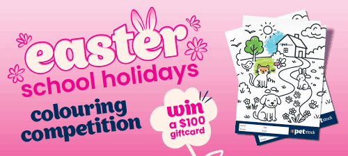 The competition commences at 08:00 NZST on 4/04/2026 and concludes at 11:59 NZST on 19/04/2026.You may print the colouring sheet at home, however all entries must be handed in-store or online by 19/04/2026 to be eligible. There will be two winners drawn after the competition concludes – one from the North Island and one from the South Island – each receiving a $100 Petstock voucher.